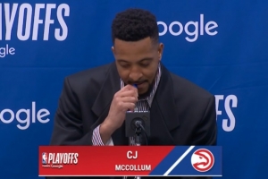 麦科勒姆:四个月前我在哪里来着?我只是很感恩能够打季后赛,身处一支优秀的球队,处于一个良好的环境。显然,我被新奥尔良交易了,我在华盛顿特区度过了一段时光,我在那里过得很开心,我很享受。我现在在亚特兰大也过得很开心。我认为你只需要从容地去对待这段旅程,然后满怀最好的希望。我相信当你用正确的方式做事时,你会在隧道的尽头得到回报,而我的回报就是能在麦迪逊广场花园对阵尼克斯。
